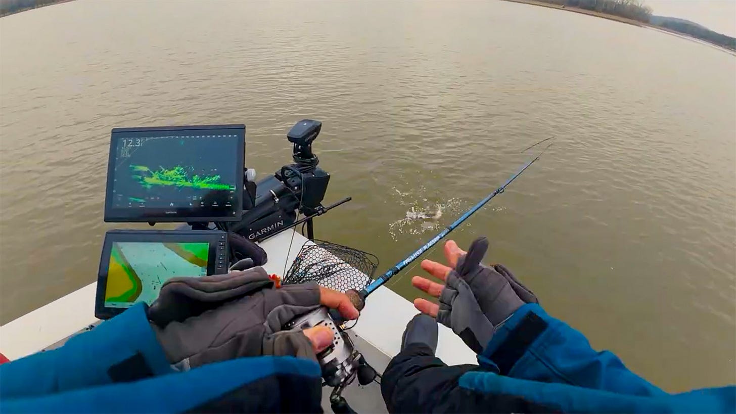 I often tell people to go to smaller bodies of water and fish if you have no electronics or fish from the bank. It’s only very small windows where going down the bank fishing on Kentucky Lake will yield much results.